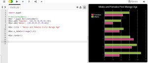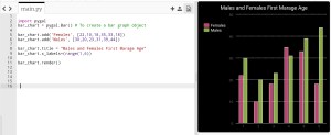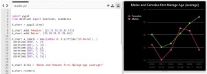 This is very normal and basic chart we use in all reports, we are feeding the data for Males and Females average age in first marage.. here is the code and the output ..