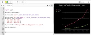 Line-chart: Time Line Last type just to add or format the x_lables of the chart, we can use lambda function to do this (we can use lambda function with any other chart types), here we will do two example, one is using full time/date and another just write the month-year as string and will use the lambda function to calculate second data-set of Tax’s based on the salary amount..