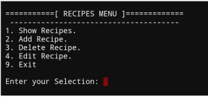 First let’s see the “Recipe Menu” and from there we will write the codes for each item in the menu. As we saw in Ingredients Menu, same functionality should be here to, Listing all Recipes, Adding new one, Editing and Deleting a recipes. We will write the code for each of them, and here is the code for the “Recipes Menu”