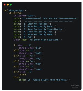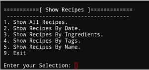 So first thing we will work on “Show Recipes”, once the user select Show Recipes another Menu will be display to give more option as in the screen shot..