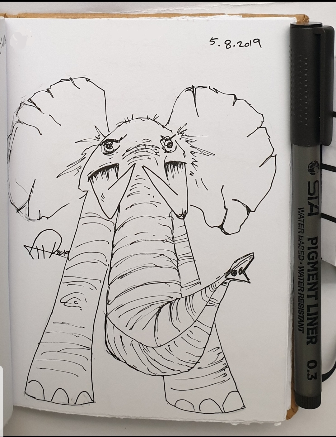 This is an Elephant sketch from One #year ago i use a pencile then black ink pen.