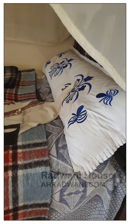[53] About: Bed-Room 1:Sleeping pillows embroidered with old, traditional designs.