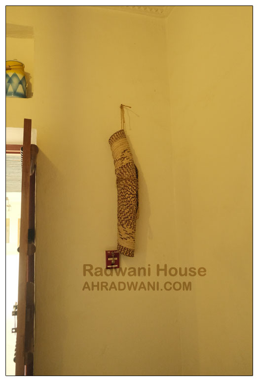 [81] About: Ceilings and windows were made of trunks and palm fronds, with the use of mud for fastening. الاسقف و الشبابيك كانت تصنع من جذوع وسعف النخل مع استخدام الطين للتثبيت.