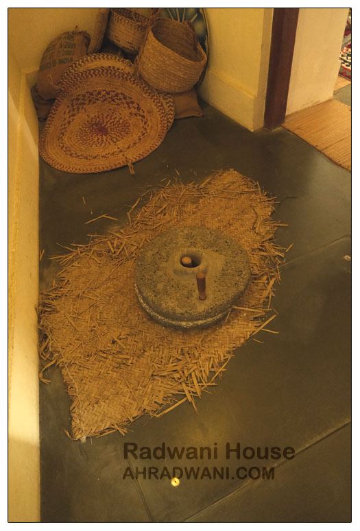 [40] About:The Kitchen: In this image we can see that the Ceiling was made of Palm Trunk and Palm Fronds [Palm Trunk and Palm Fronds was the main raw-materials to build ceilings in all the houses at that period of time]. To save some spaces in the kitchen they used to hang other stuff from the ceiling as in the photo.