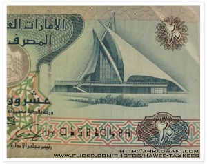 This is a shoot of the 20 UAE DIRHAMs [1$ = 3.67UAED], the both side of it contain an art,