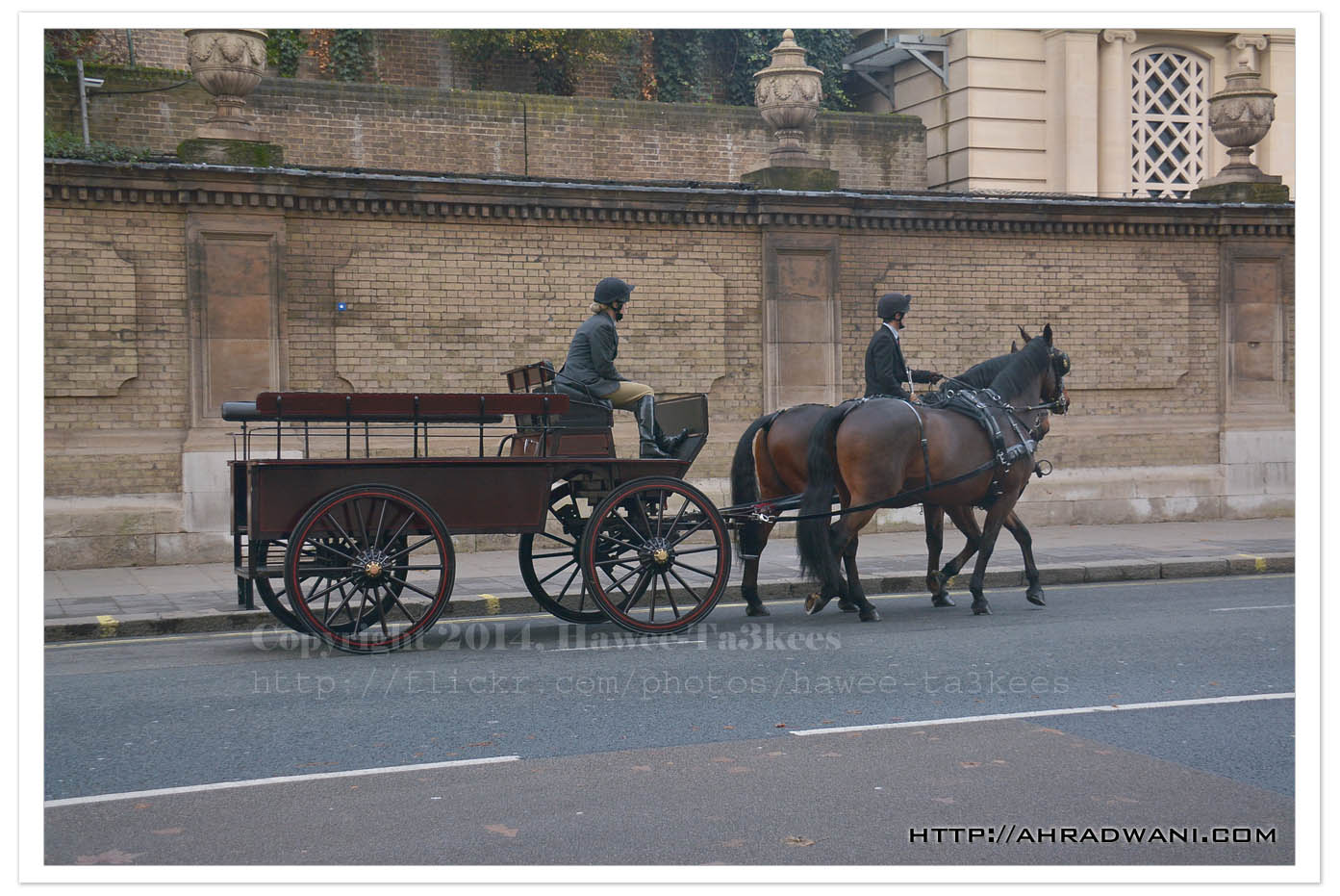 In my walking journey to Buckingham Palace starting from Victoria Station and just after the right hand turn next to the “Buckingham Palace Shop” on 7 Buckingham Palace Rd, I take several shoots of horse carriage. I take the images with Nikopn D7100 and Nikkor 18-300mm lens with camera in-hand.