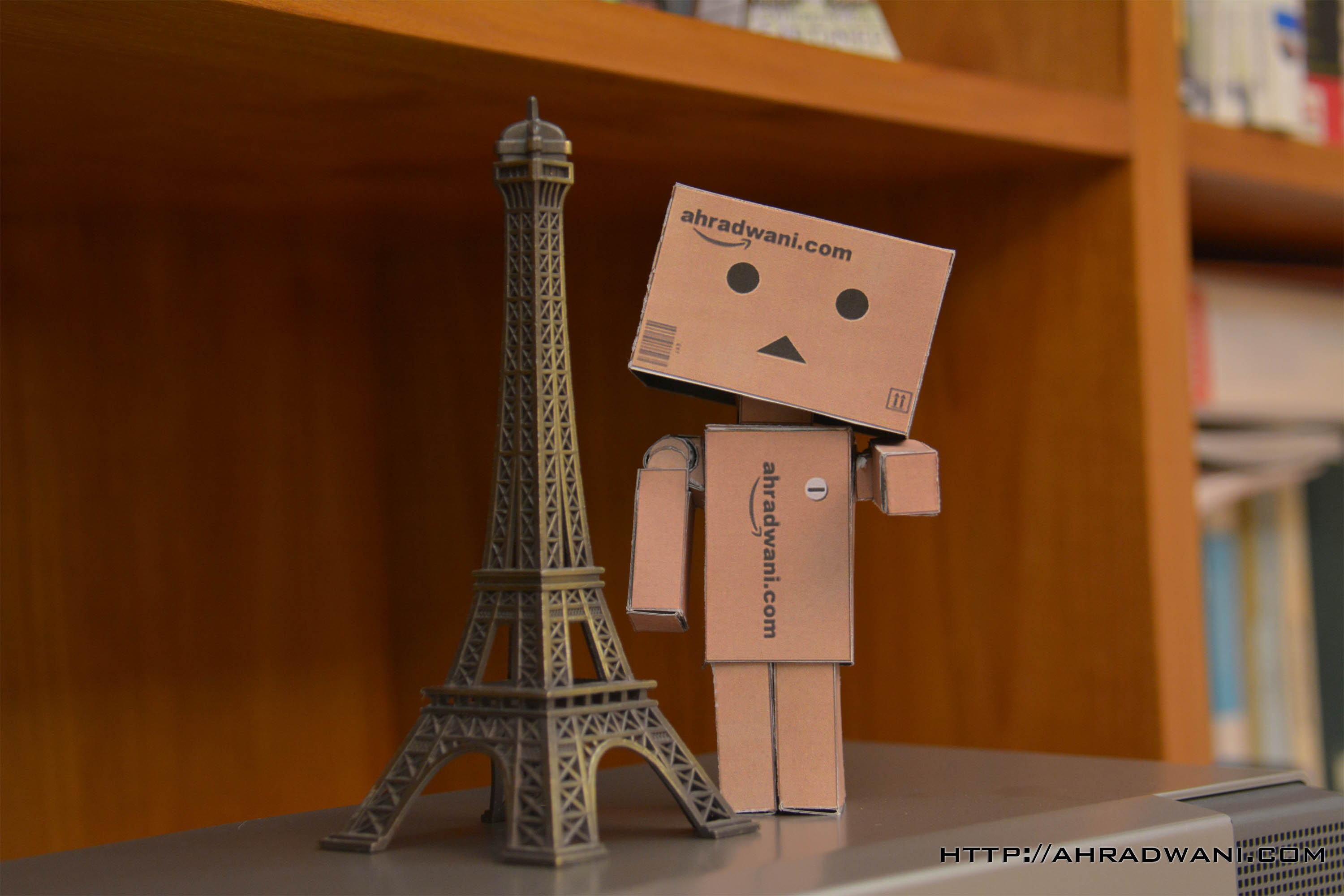 Not the first shot, but from the first session, other photos to be added later, Using the Nikon 18-300m lens on D7100 to take this shot of the HOME-MADE Danbo standing next to Eiffel tower.