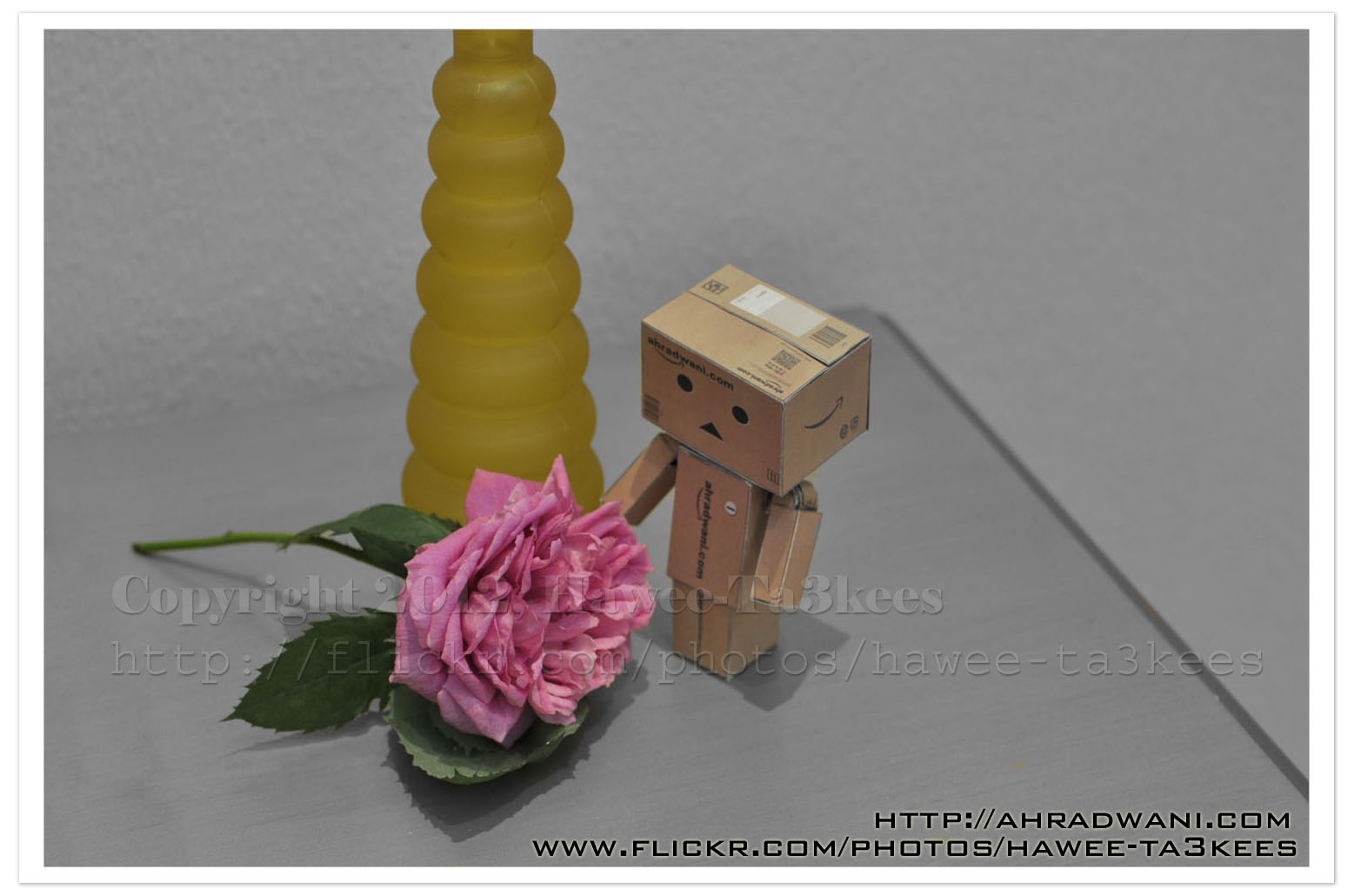 DanBo is a character that been used widely in photography, i start searching the net and fond that i can create one from cardboard paper. Here is my homemade Danbo and i print my site (‘www.ahradwani.com’) on it.