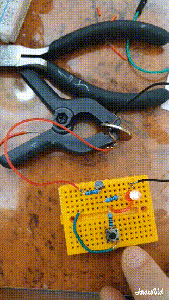 - Connect the 300ohm Resistor Between (+) Pin of the Capacitor and the (+) Pin of the LED.