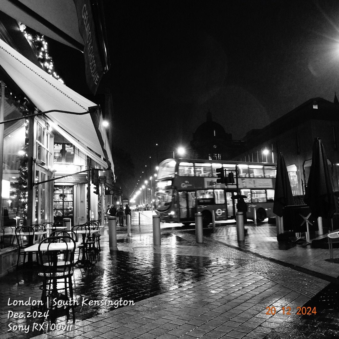 Nights Photography from South Kensington in a rainy night. Photo taken by Sony RX100vii camera in Black and white picture profile.