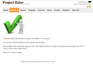 At the end we manage to solve the problem 74 using Pythonanywhere.